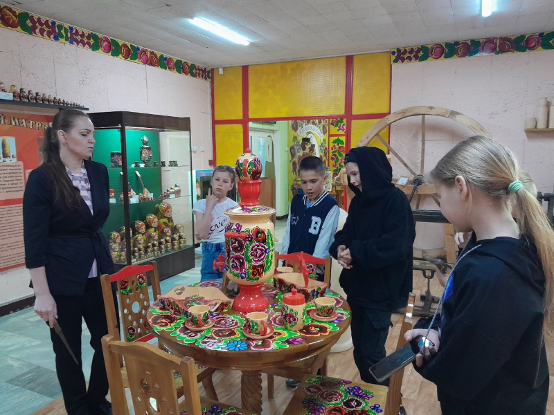 Сотрудник музея познакомил гостей с историей создания полх-майданской матрешки, рассказал о старинном и современном производстве исконно-русской деревянной игрушки. Ребята приняли участие в мастер-классе по росписи деревянного изделия: побывав в роли художника, расписали сувенир в виде половинки матрешки, либо грибочка с магнитом.