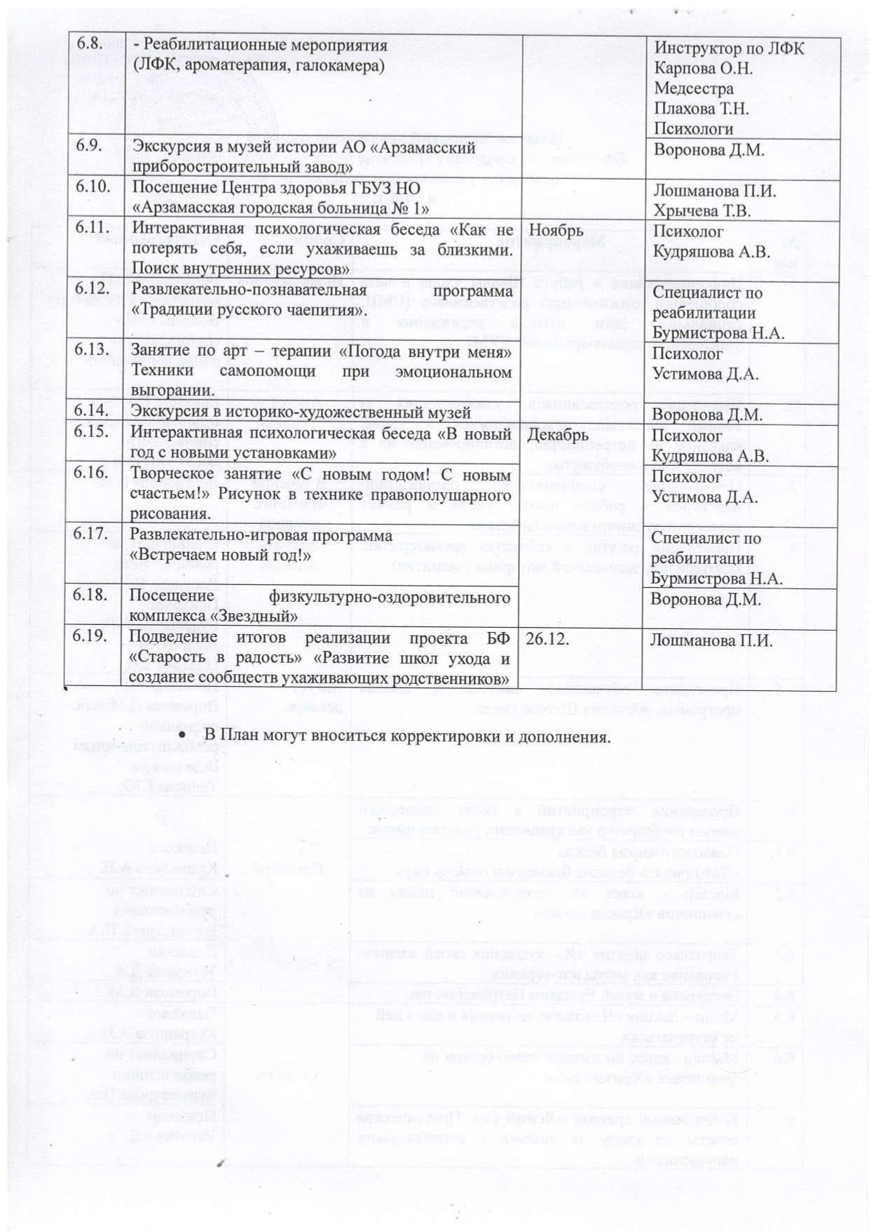 План мероприятий реализации проекта БФ "Старость в радость"" Развитие школ ухода и создание сообществ ухаживающих родственников в 2025 г"