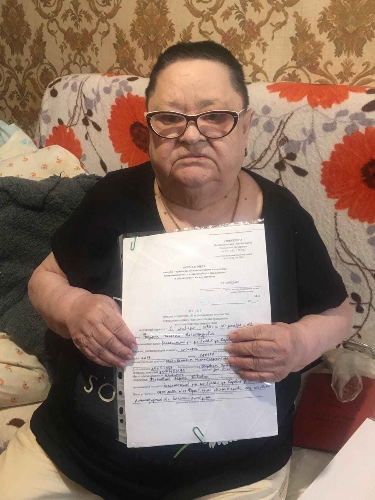 Обслуживаемая Поляшенко Людмила Никитична в 2022году перенесла серьёзную операцию на глаза и на данный момент у неё осталось только 30% зрения. Каждый год она сдавала в отдел опеки отчёт по денежным средствам своей недееспособной дочери Ларисы Павловны. Социальный работник отделения помогла ей составить и написать этот отчёт... Ничто не может передать взгляд благодарных глаз полных слёз пенсионерки…