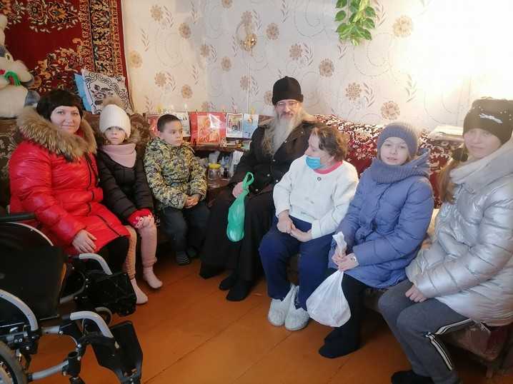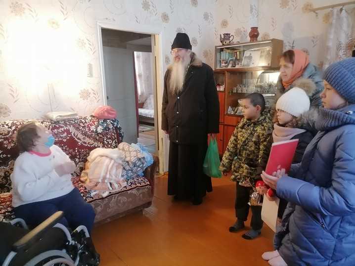 В рамках сотрудничества с Благочинием г.о.г.Кулебаки 20.01.2022 года социальный работник Центра совместно с руководителем Воскресной школы Ж.М.Дахно и пятью воспитанниками школы, священнослужителем протоиреем о.Евгением Цыпленковым посетили получателей социальных услуг на дому, поздравили с православными праздниками Рождества Христово и Крещения Господне. Дети из Воскресной школы пели тропарь Рождества Христово, колядки, песни и подарили им подарки, сделанные своими руками, а также сладкие подарки от Благочиния г.о.г.Кулебаки, иконочки и православные календари. Протоиереи о.Евгений освятил каждый дом и вручил каждому получателю баночку святой воды. Обслуживаемые на дому граждане не скрывали своих эмоций очень благодарили за подаренный им праздник.