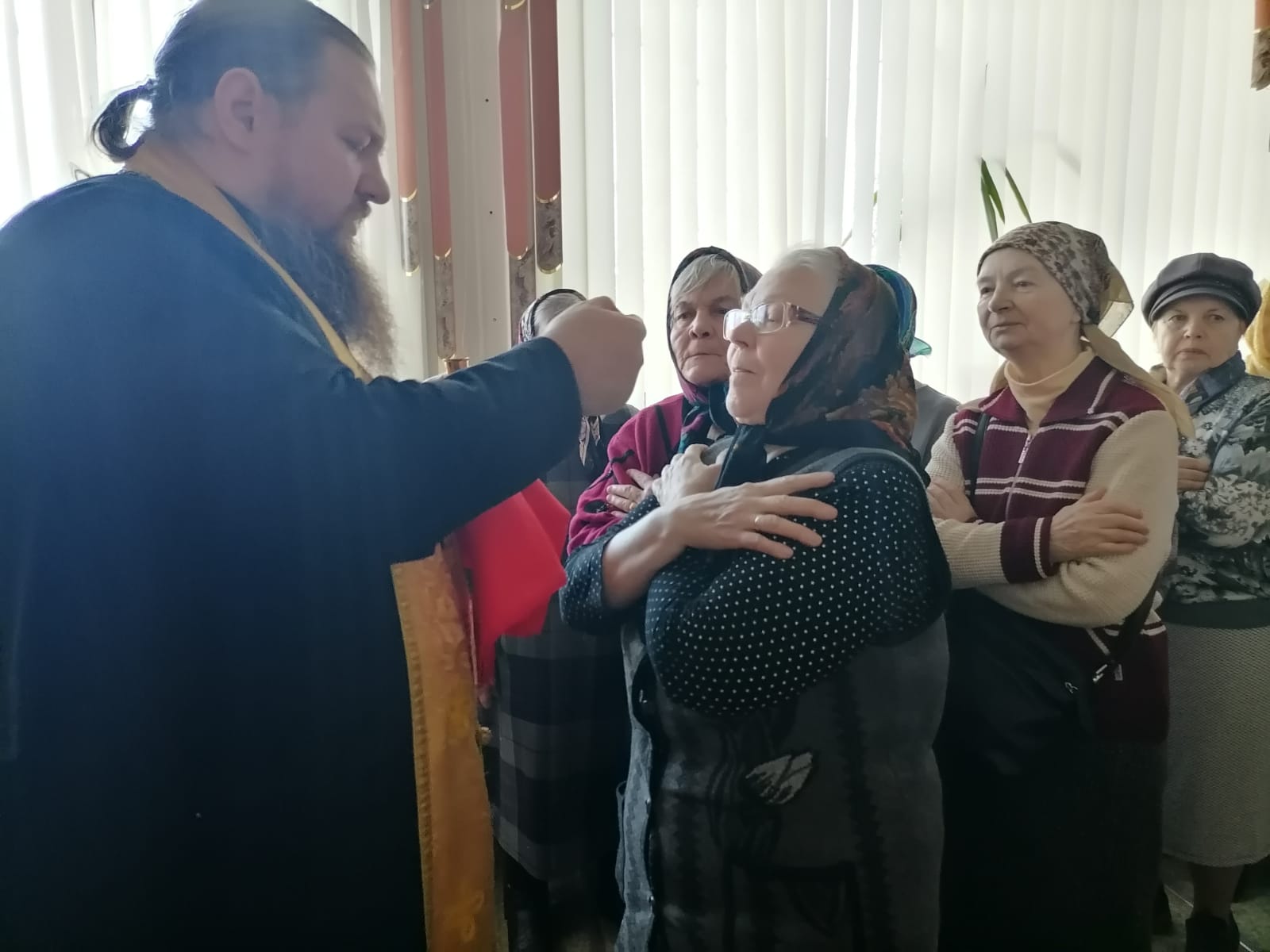 Сегодня на базе Центра социального обслуживания иерей Артемий Рабочих совершил таинство исповедания и причастия слушателей «Школы православия для граждан пожилого возраста и инвалидов».