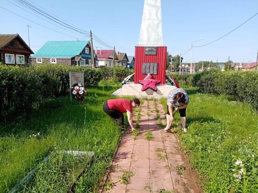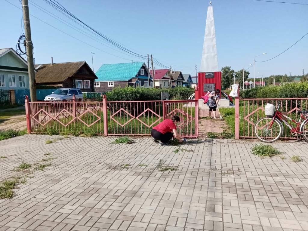 Специалисты по работе с населением в селах совместно с сотрудниками местных администраций вне зависимости от сезона года регулярно занимаются уборкой территорий возле обелисков.