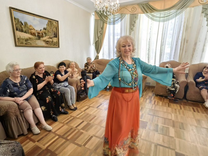 В отделении дневного пребывания для отдыхающих пенсионеров состоялся благотворительный концерт "Танго для двоих", на котором выступил дуэт «Калейдоскоп ЛЕТ».