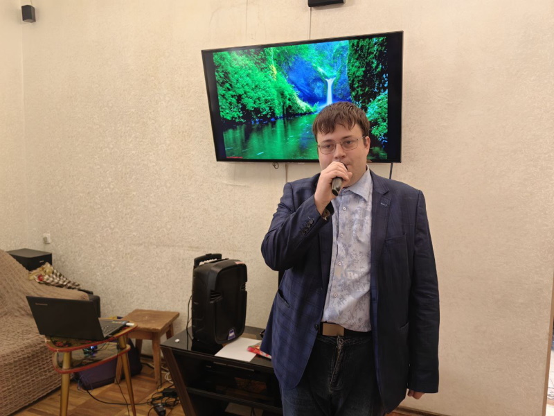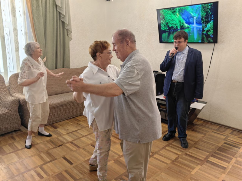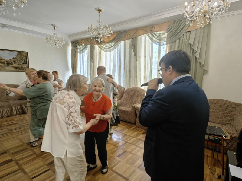 В отделении дневного пребывания с радостью встретили молодого эстрадного певца А. Смолина.