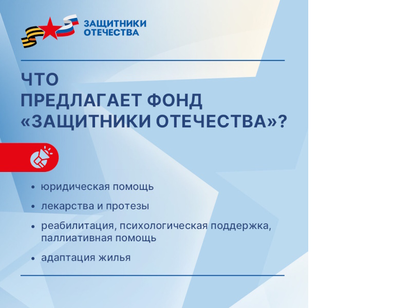 В Нижегородской области поддержку оказывает фонд «Защитники Отечества», который создан по указу президента РФ Владимира Путина и помогает: