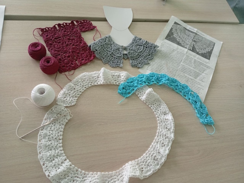Парк Швейцария. В Центре *Долголетие по-нижегородски* для граждан старшего поколения, творческой мастерской Галины Косыевой *Вязание крючком* проведено заключительное занятие по теме *Кружевной воротник Элегия*.